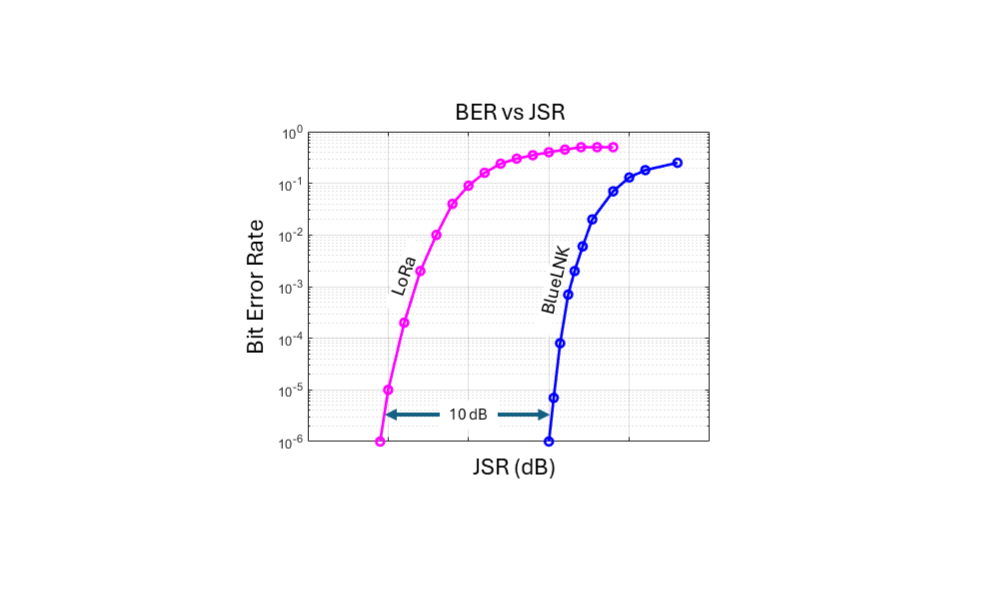 BlueLNK delivers long-range performance on par with LoRa-based systems. BlueLNK matches this capability while offering critical advantages in contested environments.